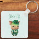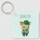 Un porte - clé avec une jolie illustration verte d'un cochon debout sur ses pieds dos, habillé d'un casquette élégant, d'un gilet et d'un pantalon. Très adorable et parfaitement adapté pour la Saint Patrick.