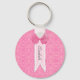 Un vintage médaillon rose damassé féminin porte - clé avec un ruban rose ceint attaché dans un joli arc. Personnalisez ce design assez ancien en ajoutant votre nom. Image imprimée plate, pas l'arc réel.