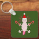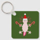 Ce porte - clé de Noël à double face amusant présente une image art numérique d'un Axolotl de Noël mignon. L'Axolotl est rose pâle avec des branchies rose vif. Il tient un sucre de canne rayé rouge et blanc dans chaque main et porte un chapeau festif de Père Noël rouge et blanc. L'axolotl est le type de Salamander du Mexique. Il y a du texte personnalisé à l'arrière pour que vous puissiez personnaliser ce design comme vous le souhaitez.