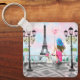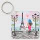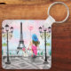 Porte-clés Jolie femme et ballon de coeur rose - I Love Paris