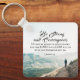 Inspirational custom scripture keychain depicts a person walking on a path overlooking a beautiful mountain valley. It features Bible Verse Joshua 1:9, "Be strong and courageous. Do not be afraid; do not be discouraged, for the Lord your God will be with you wherever you go.” _