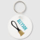 Créez un cadeau personnalisé qui conviendra parfaitement à tous ceux qui aiment jouer les cloches dans leur chorale à cloche. Ce porte - clé présente une illustration réaliste d'une cloche à main en or et en noir et est prêt à être personnalisé avec le nom de la sonnerie ci-dessus en caractères turquoises bleus gras.