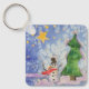 Porte-clés Joyeux Arbre De Noël Et Aquarelle De Snowman Froid