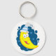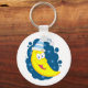 Un joyeux visage de lune jaune portant un casquette bleu et blanc. Cette conception semble vraiment efficace sur ces Porte - clés