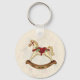 The Artistry: Rendered in delicate watercolor, the design features a creamy-white rocking horse adorned with a rich red saddle and festive holly berries. The soft, hand-painted textures give it the look and feel of an original fine art piece.