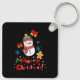 This cheerful Christmas illustration features an adorable snowman wearing a hat and scarf against a solid black background. Surrounded by bells, snowflakes, and a gingerbread man, the image highlights the bold red and green greeting "Merry Christmas!" at the bottom, making it a vibrant and sweet seasonal design.