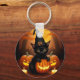 Porte-clés Kitten noir en Casquette sorcier au milieu des Cit