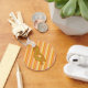 Ce porte - clé présente un Kokopelli doré avec flûte qui est l'une des images emblématiques du désert du sud-ouest des Etats-Unis. Ce Kokopelli distinctif se distingue par son arrière - plan rayé en diagonale aux tons orangés.