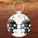 Illustration de quatre mignonnes coccinelles en noir avec des taches blanches debout dans une rangée. Image disponible sur divers cadeaux et produits.