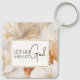 Christian porte - clé dépeint une belle aquarelle fleurie avec des fleurs blanches et des accents dorés. Il présente une citation inspirante chrétienne puissante, "Laisse aller et laisse Dieu."