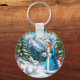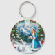 Porte-clés Lapin blanc et neiger mâle dans le bois d'hiver