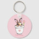 Porte-clés Lapin intelligent avec Fleur et Coeur sur Rose cla