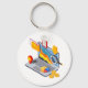 A computer laptop with lots of different icones on the screen. This design looks really effective on this Keychain