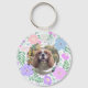 This lavender floral wreath keychain highlights your Cavalier King Charles Spaniel with a gentle pastel tone. Personalize the front with your dog's name under the silhouette. The back features space to upload a favorite photo for a meaningful accessory. A lovely choice for birthdays, holidays, or pet parents. The pastel palette gives it a clean, modern finish.