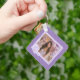 Ce porte - clé Quinceañera personnalisé est un parfait gardien ou une faveur de fête. Customisez-le avec une photo chère, le nom de Quinceañera, et l'année de l'événement. Le design est composé d'un élégant texte "Mis Quince", d'un petit accent de diamant et d'un élégant motif en diamant lavande. Un cadeau magnifique et mémorable pour sa journée spéciale. Montré dans une palette branchée lavande et lilas, mais toutes les couleurs peuvent être modifiées pour correspondre à sa photo. Assurez-vous de modifier les deux côtés si vous effectuez des modifications personnalisées. © Kimbellished, LLC