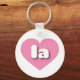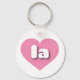 Ce porte - clé est doté d'un coeur rose vif contenant les lettres coques inférieures arrondies et audacieuses, blanches, une abréviation ludique pour Louisiane, l'État pélican ou Los Angeles, la ville des anges.