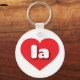 Ce porte - clé est doté d'un coeur rouge vif qui contient des lettres coques basses arrondies et audacieuses, une abréviation ludique pour Louisiane, l'État pélican, OU Los Angeles, la ville des anges.