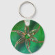 Une oeuvre abstraite en vert vif et en cuivre. Un bijou vert clair est entouré de lames d'herbe bordées de cuivre, agrémentées d'émeraudes étincelantes et d'étoiles oranges. Les fractales ondulantes et courbes de l'arrière - plan apparaissent en vert, marron et orange plus profond à l'intérieur du fil de cuivre du motif de la feuille.