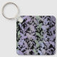 Keychain key ring and key fob holder printed with a Leafy Creeping Vine Drawing Pattern With Pastel Colors On A Black Background