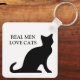 Les vrais hommes aiment les chats noir et blanc porte - clé réversible. Amusante idée cadeau d'anniversaire pour les amoureux de les chats. Porte - clé personnalisé avec devis de chat.