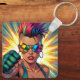 Pop art bande dessinée style femme en lunettes de soleil avec reflet arc-en-ciel avec sous-coupe donnant une coupe supérieure pow punch arc-en-ciel lgbtqia+ lunettes de soleil porte - clé.
