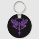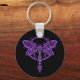 Cette conception de libellules tribales est décorée de tourbillons complexes et de motifs de points. Les lignes délicates sont peintes d'un violet profond et surligné, donnant à l'image une brillance subtile. Ce motif symétrique a un cercle mince derrière la libellule, avec de minuscules points le long du bord extérieur. L'arrière - plan de ce porte - clé est fini avec un noir pur créant un contraste agréable. Ce design stylisé est une représentation saisissante de cette merveilleuse petite créature volante.