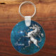 Magnifique illustration de licorne de style héraldique vintage sur fond de ciel céleste. Personnalisez avec un nom ou autre texte en police de caractères blanche.
