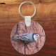 Les amateurs d'oiseaux et de nature apprécieront ce porte - clé qui présente un Nuthatch à poitrine blanche avec un arrière - plan d'écorce de pin. Vous pouvez même ajouter du texte ou le personnaliser avec un nom. "Cute little Nuthatch" © Penny's Design Shop.