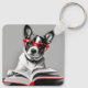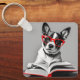 Photo en noir et blanc d'un chien Lire une lecture avec un éclat de couleur cadre en verre rouge une couverture de livre