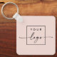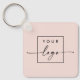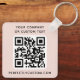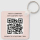 Porte - clé double face avec votre logo personnalisé, code QR et texte personnalisé sur un arrière - plan couleur clair rose ou personnalisé. Modifiez les polices et les couleurs de police, déplacez et redimensionnez les éléments à l'aide de l'outil de conception.