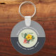 Arrondi, anneau clé en aluminium avec modèle logo de l'entreprise. Ajoutez également un court message de remerciement pour les clients, et / ou incluez le nom et l'adresse de l'entreprise. Une ligne de texte imprimé blanc s'affiche en haut du logo et les autres courbes en bas. Les couleurs Arrière - plans sont noir et gris. Parfait comme un petit cadeau pratique offert aux clients et aux clients. Modifiez les couleurs de l'outil de conception.