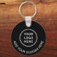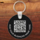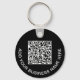 Porte - clé noir promotionnel moderne pour votre entreprise ou organisation. Téléchargez votre logo, créez facilement un code QR numérisable lié à votre site Web, et ajoutez deux lignes de texte blanc, comme votre nom d'entreprise, votre slogan, merci, ou laissez vide.
