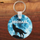 Porte-clés Loup hurlant Hiver fumée bleue Nom personnalisé