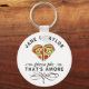 Personalize this humorous keychain with the names of you and your spouse. Design features two slices of delicious looking pizza with the words "pizza pie That's Amore". Perfect for a pizza loving couple!