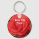 Je t'aime Maman avec une jolie rose rouge en pleine floraison avec porte - clé des gouttes de pluie persistantes. Photographie florale par Susan. Vous pouvez modifier ou ajouter n'importe quel texte que vous souhaitez. Idée de cadeau pour les anniversaires, la fête des mères, la Saint-Valentin ou toute occasion. Cette image est disponible sur de nombreux produits dans ma galerie.