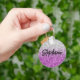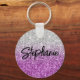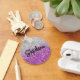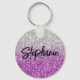 Créez votre propre porte-clés bouton rond à son nom avec un dégradé de paillettes luxe argent gris et violet.