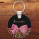 Un luxueux porte - clé empreinte de léopard à fourrure brune et or tanné avec un ruban rose mauve ceint d'un arc girly. Personnalisez ce motif à la mode en ajoutant votre nom.