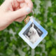 Ce porte - clé présente une photo du ciel et Olive dort paisiblement avec un verset de la Bible de l'Évangile de Jean où Jésus nous donne Sa paix.