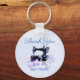 Un élégant porte - clé en Merci vintage avec un design de machine à coudre avec de jolis tissus et fils sur un arrière - plan bleu pâle, avec le texte "Merci coudre beaucoup!" Une façon amusante de dire grâce de / à un couturier d'égout ou de la courtepointe. Parfait pour votre groupe de courtepointes ou de couture. Ajoutez votre propre message au verso ou supprimez le texte si vous avez besoin d'un retour vide.