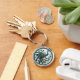 Élégant porte-clés avec une image d'un magnifique Paon avec sa queue déployée. L'image a un aspect métallisé dans des nuances de turquoise, de bleu et d'or.