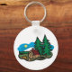 Une petite maison en bois dans les bois au milieu des arbres. Cette conception semble vraiment efficace sur ce Porte - clé
