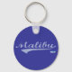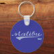 Malibu dans une hanche stylisée texte en écharpe. Vous pouvez presque sentir le paradis de la plage de Californie détendue dans ce porte - clé design original. Le style de vie californien a été intégré dans un design. Ce style swash en bleu poudreux lecture Malibu avec arrière - plan bleu océan résume simplement les attitudes décontractées et les corps sportifs attrayant des rayons sur une plage de SoCal.