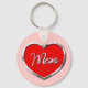 Ce porte - clé montre un coeur gravé et chromé avec le mot "Maman" au centre.