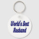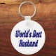 Porte - clé avec le meilleur mari du monde en texte bleu foncé 3D. Porte - clés ronds et carrés disponibles en plusieurs tailles.