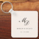 Ce porte - clé mariage est un design élégant de monogramme de calligraphie script. Idée cadeau parfaite pour les jeunes mariés.