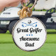 Montrez la grandeur de papa sur le terrain de golf avec un porte - clé amusant ! Ce modèle éditable présente des clubs de golf croisés, et l'expression "Great Golfer, Awesome Papa". Le texte peut être customisé pour un autre destinataire. Un cadeau élégant pour la Fête des pères, la fête des mères, les anniversaires ou les vacances ! Couleurs imprimées : bleu, noir et blanc.