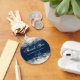 Un design élégant et abstrait avec de la dentelle crème et des perles faites de cercles et de bulles. L'arrière - plan est bleu foncé avec des carrés défraîchis sur le côté. Design joli et délicat. Le texte dit "Merci d'être venu à ma fête. Personnalisez / customisez avec votre nom.