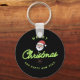 This image displays a "Merry Christmas and Happy New Year" greeting card with a striking and contrasting design. The deep black background highlights the word "Christmas," which is written large and bold in a bright, neon lime-green cursive style, accompanied by an illustration of a smiling Santa Claus head at the top. The overall design has a modern and festive feel, with essential red and green color accents for the celebration.