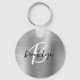 Porte-clés Métal brossé argenté Noir Blanc Script Monogramme