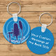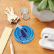 Silhouette de microphone de studio sur fond bleu. Texte personnalisé sur les deux côtés.